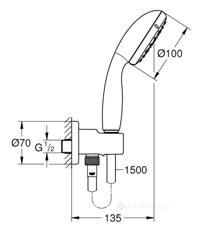 Tempesta 100 Душевой набор, 2 вида струй (26406001) со встроенным подключением для душевого шланга 1/2 дюйма