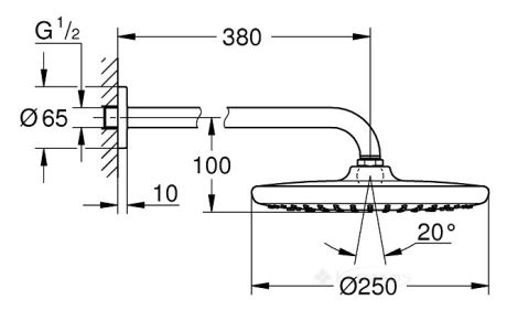 Tempesta 250 верхний душ с кронштейном к стене с EcoJoy (26668000)