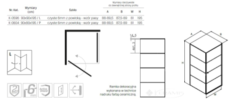 Польша, гарантия от произв. - 2 года, безопасное стекло, прозрачное, двери распашные, профиль чёрный