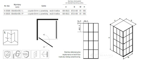 Польша, гарантия от произв. - 2 года, безопасное стекло, прозрачное, двери распашные, профиль чёрный