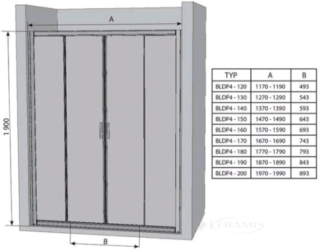 Душевые двери Ravak Blix BLDP4-190 стекло Transparent (0YVL0100Z1)