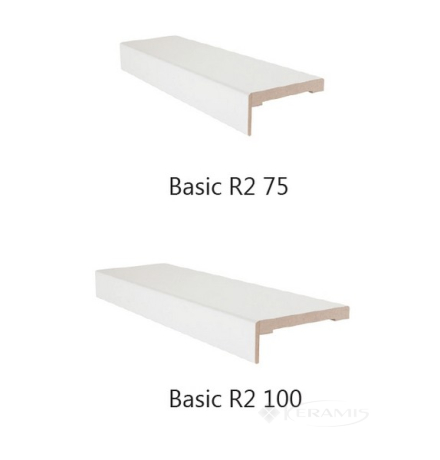 Изготавливается из МДФ. Имеет стандартную ширину 75 мм и специальную конструкцию, которая позволяет монтировать без крепежного материала.