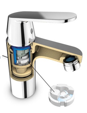 Компания GROHE одна из немногих, производящих картриджи для своей продукции самостоятельно. Картриджи смесителей Grohe снабжены дисками из керамического сплава, успешно применяемого в аэрокосмической отрасли. Поверхность дисков покрыта специальной смазкой марки Teflon®, что обеспечивает их управляемое и плавное скольжение относительно друг друга. Рычаг смесителя соединен с картриджем стержнем, изготовленным из литой латуни для надежности, прочности и долговечности. Особые керамические диски и применение технологии Teflon® в картриджах GROHE SilkMove® обеспечивают рычагам смесителей точный и легкий ход на протяжении всего срока службы.