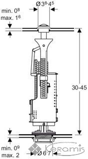 Сливной механизм Geberit Impuls Basic 230 с двойным смывом рекомендован для керамических бачков с отверстиями в крышке 20 - 45 мм