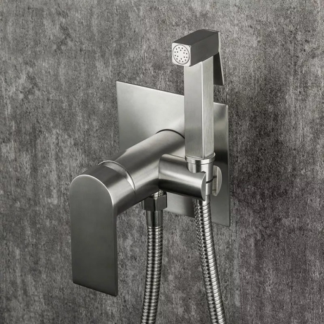 Перейти к подробному описаниюГигиенический душ Gappo скрытого монтажа, сатин (G7299-20) сделан из нержавеющей стали. Поэтому срок эксплуатации составит больше 10 лет. Сталь лучший сантехнический материал. Воздействие водопроводной воды на сталь никак не отражается. Для размещения смесителя и лейки есть специальная панель, она крепится к стене саморезами и дюбелями. Лейка работает в одном режиме. Шланг, который идет в комплекте длиной 1.2 метра.