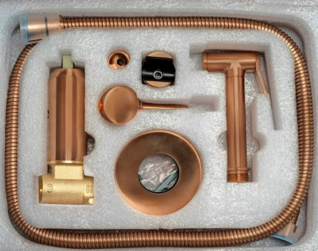 Функциональный и современный набор гигиенического душа для биде. Изготовлен из высококачественной латуни с тройным медным покрытием и матовым покрытием. PVD покрытие гарантирует высокую стойкость к механическим повреждениям и коррозии.