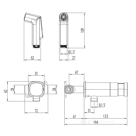 Гигиенический набор Imprese хром (VR30704U-BT):