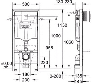 Инсталляция для подвесного унитаза в сборе 4 в 1 GROHE Rapid SL