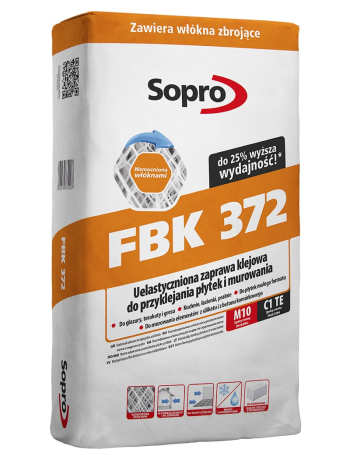 Клей для плитки Sopro FBK 20 kg (372/20) усиленный тонкослойный клеевой раствор для керамической плитки и гресса размером до 30×30 см.