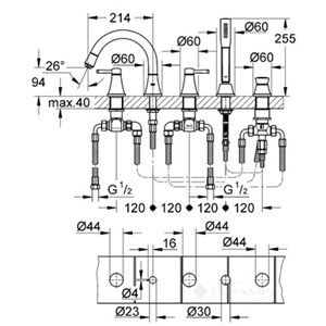 Германия, гарантия от произв. - 5 лет, цвет: хром/золото, материал: латунь, двухрычажный, установка на борт ванны