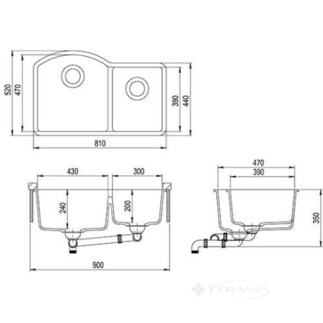 Перейти к подробному описаниюКухонная мойка Aquasanita Arca 810x520x240 две чаши, альба (SQA220W 710):