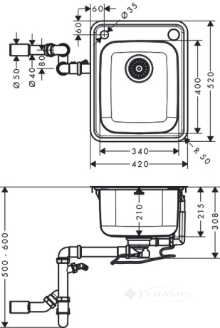 Кухонная мойка Hansgrohe S412-F340 42x52x21,5 нержавеющая сталь (43334800):