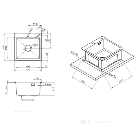 Эта модель оснащена переливом, предотвращающим перелив воды, и комплектуется сифоном, что делает процесс установки более простым и быстрым. Отсутствие крыла позволяет сэкономить пространство на кухонной столешнице, а наличие отверстий под смеситель и дозатор обеспечивает максимальный комфорт в использовании. Интегрированный способ монтажа позволяет мойке выглядеть как естественная часть кухонной поверхности, создавая завершенный вид без видимых швов или стыков.