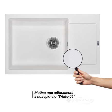 Кухонная мойка Lidz 781x510/200 белый WHI-01 (LIDZWHI01781510200) - изготовлена из качественного искусственного камня, имеет матовую поверхность и будет хорошо смотреться в сочетании со смесителем того же цвета. Изделие монтируется врезным способом в подготовленное отверстие в столешнице. Мойка выполнена с основной и дополнительной чашами и небольшим крылом, с отверстием слив-перелив и отверстием под смеситель. Отменное качество и дизайн мойки позволят удовлетворить самые высокие требования.