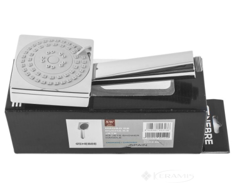 Лейка для душа Genebre Kenjo хром (DXK3 45)- высококлассная сантехника от ведущего испанского бренда Genebre, который весьма продуктивно занимается изготовлением высококачественных изделий для обустройства санузлов. Компания с 1981 года непрерывно совершенствует собственные технологии, тем самым, завоевывая непреложность лидерских позиций на международном рынке. Обтекаемость линий, изящность, практичность и функциональность, которые свойственны санитарной технике из Испании, выгодно дополнят интерьер ванной комнаты, обеспечивая длительный период обслуживания с сохранением эстетичности.