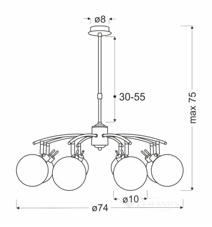Эта люстра с 8 лампами с цоколем G9 обеспечивает достаточное освещение комнаты. Ширина 74 см и высота 75 см делают ее идеальным размером для средних и больших помещений. Хотите ли вы создать уютную атмосферу или сделать комнату ярче - эта люстра позволит вам выбрать освещение, соответствующее вашим потребностям.