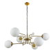 Материал: металл + стекло Цвет: бронза + белый Высота (макс.): 1150мм. Размеры подвеса: 900х300мм. Плафон: 150мм (стекло). 120х25мм Источник света - 6 ламп Е27...