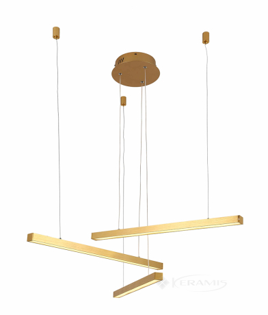 LED люстра 918LP457-3 GD – современное осветительное устройство со стильным лаконичным дизайном. Люстра предназначена для освещения в жилых и коммерческих помещениях. Люстра состоит из трех горизонтально расположенных планок – плафонов прямоугольной формы. Планки крепятся к потолку с помощью тросиков и монтажной планки. Размер одной такой планки – плафон 600х30х25мм. Корпус светильника золотого цвета, высота тросиков регулируется. На каркасе находятся светодиоды общей мощностью 10W. LED источники очень экономичны и имеют длительный срок эксплуатации. Люстра предназначена для работы в сети переменного тока с номинальным напряжением 220 В. Уровень защиты корпуса от попадания внутрь пыли и влаги – IP20. Размер потолочного основания: 170х50мм.