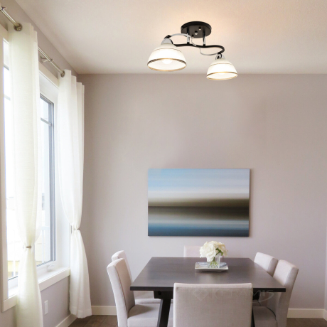 Общий вид люстры Sirius Л 8082/2 является стильным и современным, а ее черный металлический каркас вместе со светлыми стеклянными плафонами с ободочными черными линиями создают эффектное и приятное освещение в помещении.