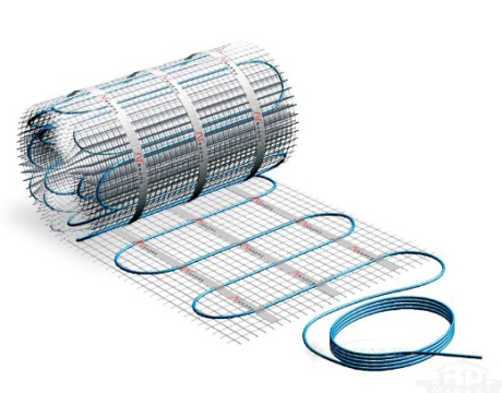 Перейти к подробному описаниюТонкий нагревательный мат с кабелем с тефлоновой высокотемпературной изоляцией. Готовый к монтажу и подключению. Мат состоит из двужильного кабеля с алюминиевой защитной трубкой, вплетенный в тонкую и гибкую стекловолоконную сетку на клейкой основе.
