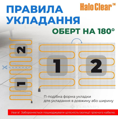 Перейти к подробному описаниюНагревательные маты HaloClear™ от NAVIN состоят из тонкого кабеля, равномерно распределенного и прикрепленного к стекловолокнистой сетке шириной 50 см, что обеспечивает самый быстрый и безопасный способ установки электрического теплого пола.