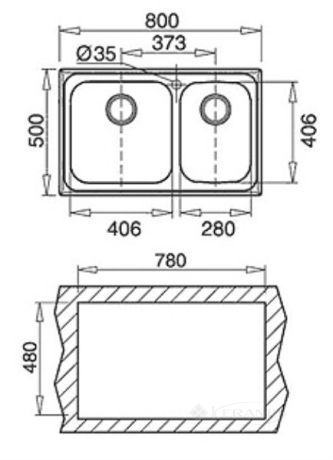Размеры чаш: 406 х 406 x 190 мм, 400 х 280 х 190 мм