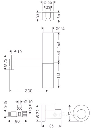 в набор входят: сифон Flowstar, декоративная бленда, 2 накладки на угловой вентиль, 2 угловых вентиля