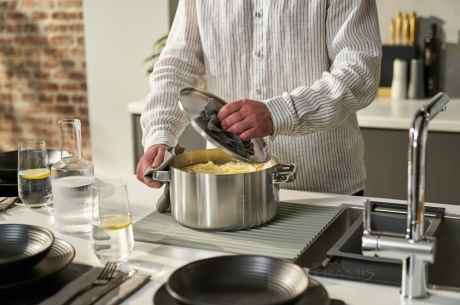 В этой хорошо оснащенной и интуитивно понятной модульной системе аксессуаров есть все необходимое для легкого приготовления блюд; она экономит время и место и позволяет легко переключаться между различными процессами.