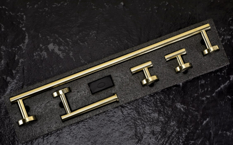 Все элементы изготовлены из высококачественного металла, устойчивого к влаге и коррозии. Поверхность придает элегантность и выразительный характер, сохраняя устойчивость к следам эксплуатации. Аксессуары крепятся к стене, что гарантирует стабильность, долговечность и удобство в повседневном использовании.
