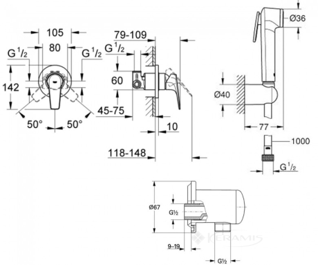 Набор гигиенического душа Grohe BauFlow хром (UA12164500), состоит из:
