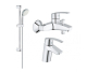 экономный режим расхода воды grohe WaterSaving 5.7 л/мин в компактном смесителе для раковины s-размера с нажимным донным клапаном, смеситель для ванной с плавным ходом рычага и душевой гарнитур с эргономичной прорезиненной shockproof ручной лейкой для сохранением комфорта и удовольствия от принятия летнего освежающего душа rain!