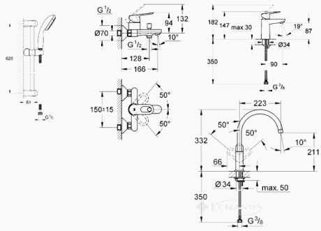 Отзывы о товаре Набор смесителей для ванны + кухонный смеситель Grohe Bauloop (123225K)1 отзыв
