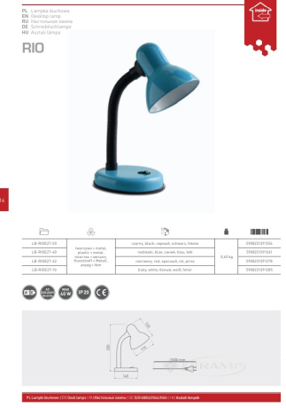 Rio – это классическая настольная лампа в стиле ретро. Дизайн сильно отсылает к 80-90-м годам ХХ века.
