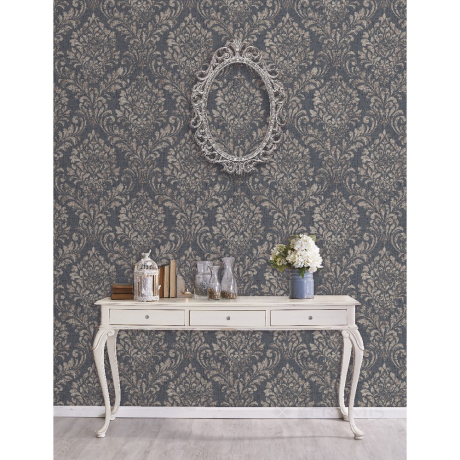 Франция, для гостиной; для кухни; для офиса; для прихожей; для спальни, рисунок: дамаск, тон: тёмные, основа: флизелин, моющиеся, особо стойкие, ширина рулона: 53 см