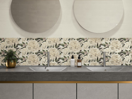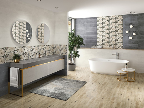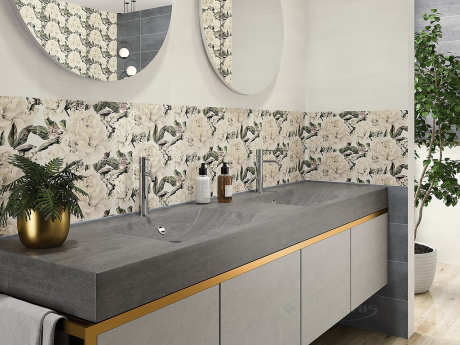 Коллекция настенной плитки Gracia показывает сразу несколько трендов, имитацию бетона и имитацию обоев. Серые оттенки базовой плитки будут настоящей находкой для дизайнеров и сделают ваш интерьер сдержанным и современным. Рисунок цветов, на плитке, которые имитируют обои создаст уютную атмосферу в вашем жилом пространстве, а также позволит выкладывать плитку не только в ванной комнате, а также в гостиной, спальне, холле и прихожей.