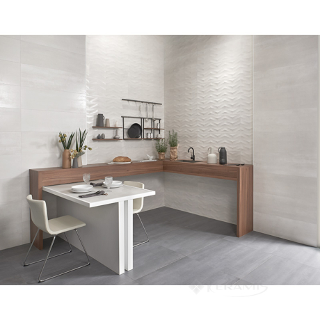 Опираясь на последние тенденции в дизайне интерьеров, для изготовления декоров производители применили структурные пуансоны, которые оставили на поверхности кафеля объемный рисунок. Благодаря этому плоскость стены получает другое прочтение, а цвет керамики становится богаче на нюансы.
