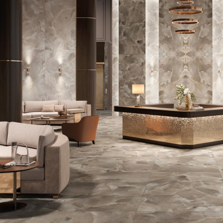 Mirage - хорошо известна благодаря своим отличным эксплуатационным характеристикам. Она производится из белой глины, керамогранита или полнотелого керамогранита. Использованные материалы и специальные технологии определяют отличные свойства готовой продукции: