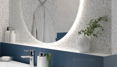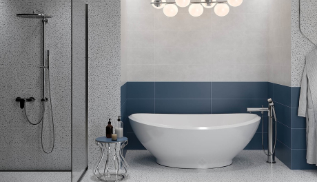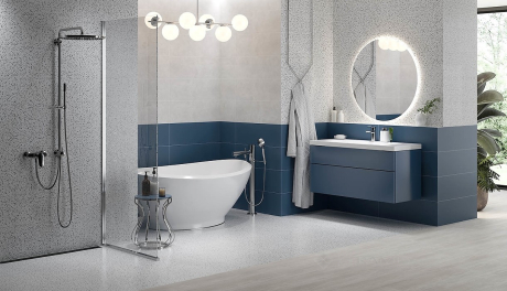 Данная коллекция демонстрирует удачное сочетание синего моноколоры и серого бетона, а в качестве главного элемента предлагаем яркое terrazzo с рисунком горной породы, которое прекрасно подходит для базовой плитки. Идеальна для создания интерьеров в классическом стиле и стиле модерн с ощущением глубины пространства и умиротворение.