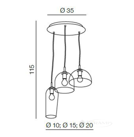 - Диаметр плафонов: 10 см, 15 см, 20 см