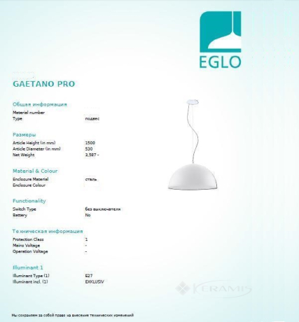 Подвесной светильник Eglo 62123 GAETANO – отличное дополнение интерьера любого помещения. Коллекция GAETANO отчетливо выделяется на фоне остальных брендов. Данное изделие имеет оптимальную высоту 150 см. Подвесной светильник Eglo австрийского производства подходит под цоколь E27. Подвесной светильник – надежный прибор освещения, в котором материал основания – Металл, материал плафона - Металл. Количество лампочек модели Eglo 62123 GAETANO - 1 шт. Мощность лампы - 60 Вт, что позволяет качественно освещать помещение.