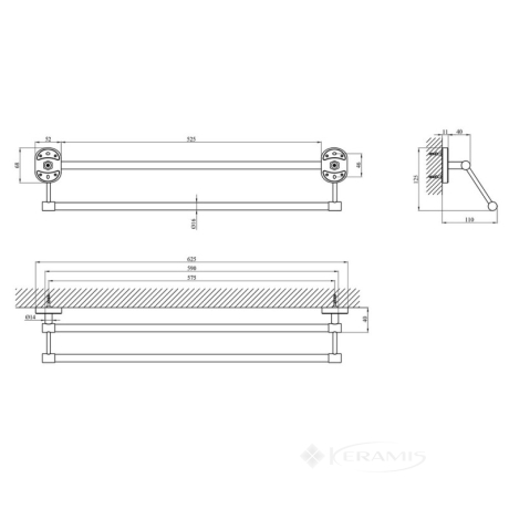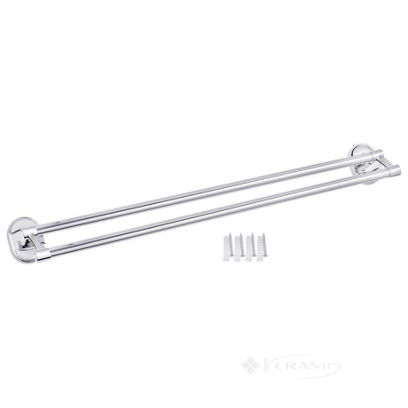 Двойной полотенцедержатель Kroner KRM Elbe-ACC2909 станет оригинальным дополнением ванной комнаты. Держатель для полотенец изготовлен из прочного металла с хромированной поверхностью и имеет два поворотных стержня, на которые можно разместить два полотенца. Длина изделия: 635 мм. Скрытое крепление позволяет сохранить украшение, а хромированное покрытие предотвратит образование коррозии и грязи. Держатель для полотенец крепится на стене на желаемой высоте.
