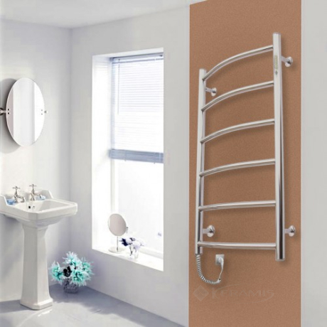 Модель полотенцесушителя Дуга – это электрический полотенцесушитель для ванной комнаты в форме лесенки. Изготовленный из нержавеющей стали марки AISI 201, стойкой к коррозии, что обеспечивает изделью долговечность. Перемычки данной модели имеют класическую форму дуги.