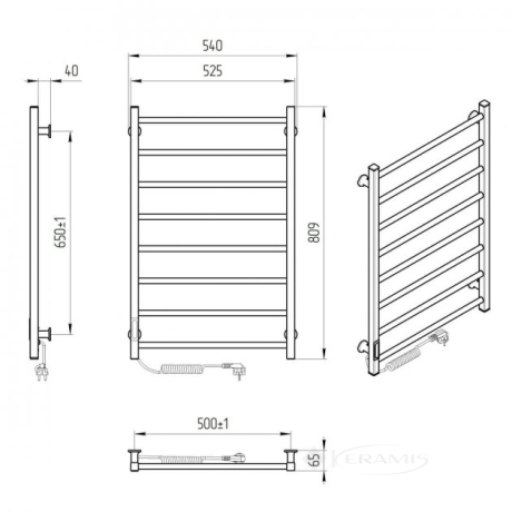 Перейти к подробному описаниюЭлектрический полотенцесушитель Laris Альфа ЧК8 500х800 Э черный, левый