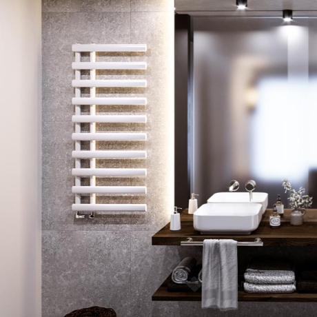 Благодаря уникальной технологии, отверстие для воды увеличен до 17 мм, что значительно улучшает поток воды, увеличивая тепловыделение полотенцесушителя и предотвращая закупоривание. В полотенцесушителях других торговых марок это отверстие обычно составляет 9 мм.
