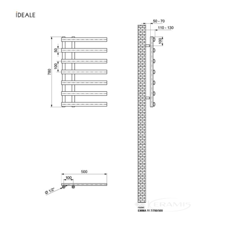 Полотенцесушитель водяной дизайнерский Ideale Emma 11 7x780x500 антрацит