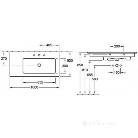 Германия, гарантия от произв. - 25 лет, цвет white alpin, размер 50x100 см, высота 16,5 см, чаша раковины справа