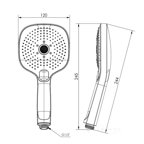 - Форма лейки ручного душа : квадратная