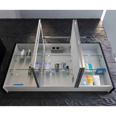 - Зеркальный шкаф укомплектована LED-светильником 800 мм, а также встроенным в зеркальное полотно LED-освещением