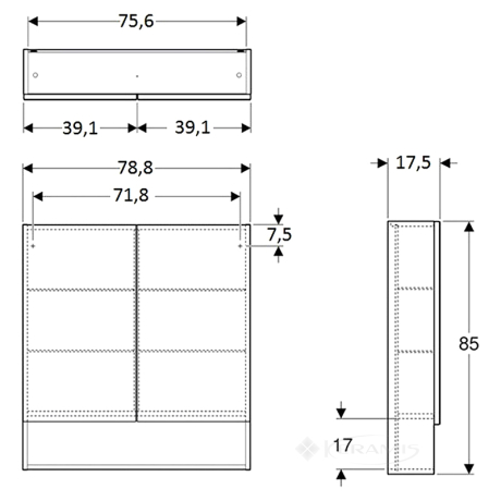 Перейти к подробному описаниюШкафчик зеркальный Geberit Selnova Square 78,8x85x17,5 black (501.269.00.1). В комплектацию входит: зеркальный шкаф и полка.