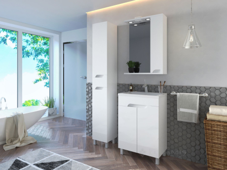 Перейти к подробному описаниюКорнелия белая – серия, воплощение оригинальности и современного дизайна в ванной комнате. Шкаф зеркальный Корнелия изготовлен из качественных материалов. Шкаф зеркальный имеет одну дверцу на которой установлены завесы CLIP top BLUMOTION, которые гарантируют высокое качество движения и плавное открывание и закрывание, которые выдерживают 200000 циклов пользования. Изделие имеет интегрированную гармонично выглядящую ручку. Внутреннее место разделено полочкой ДСП шириной 16 мм. Корпус – ламинированное ДСП толщиной 16 мм. Фасад – МДФ двухстороннего ламинирования толщиной 16 мм на котором размещено влагостойкое зеркало. Зеркало покрыто амальгамой на основе серебра толщиной 4мм. И укомплектован светодиодными светильниками и выключателем с розеткой. Цвет – белый. Шкаф зеркальный Корнелия поставляется в собранном виде.